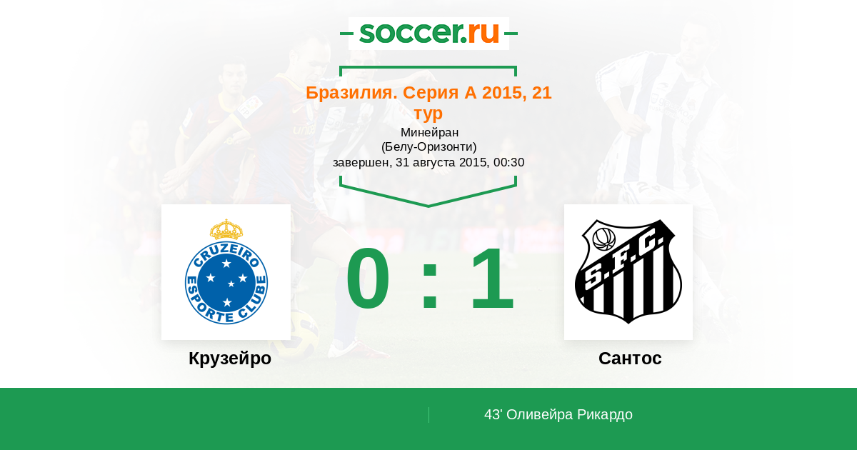 Бразилия. Серия А 17.05.2015 Сантос Логотип футбольный клуб Сантос (Сан-Паулу) 1:0 Логотип футбольный клуб Крузейро (Белу-Оризонти) Крузейро