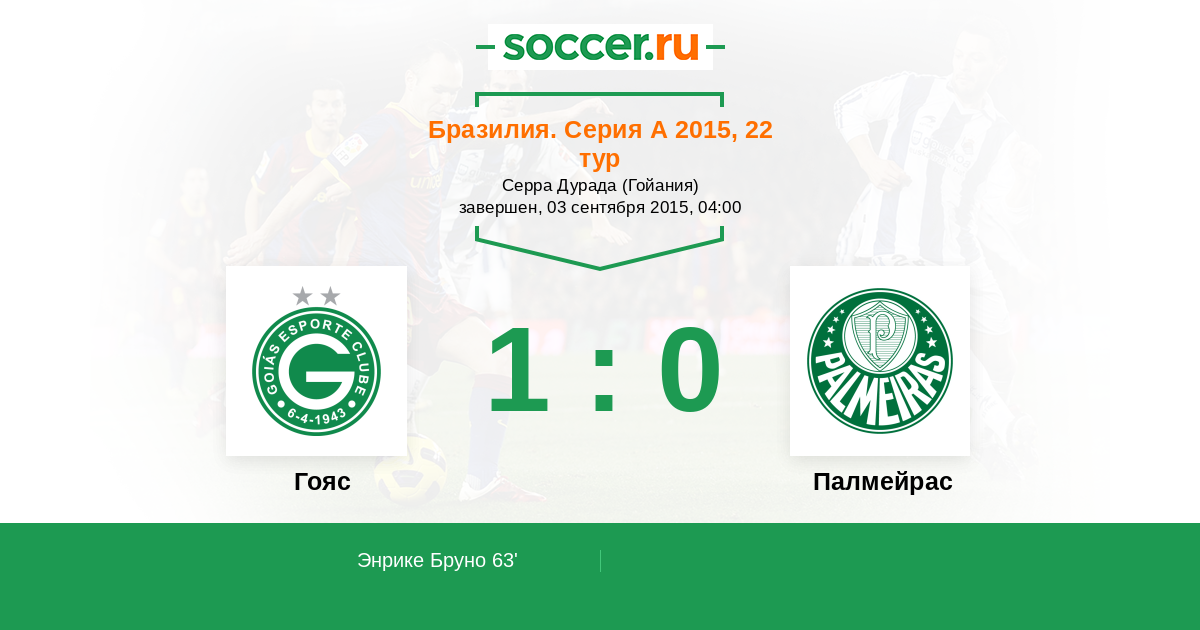 Бразилия. Серия А 24.05.2015 Палмейрас Логотип футбольный клуб Палмейрас (Сан-Паулу) 0:1 Логотип футбольный клуб Гояс (Гояния) Гояс