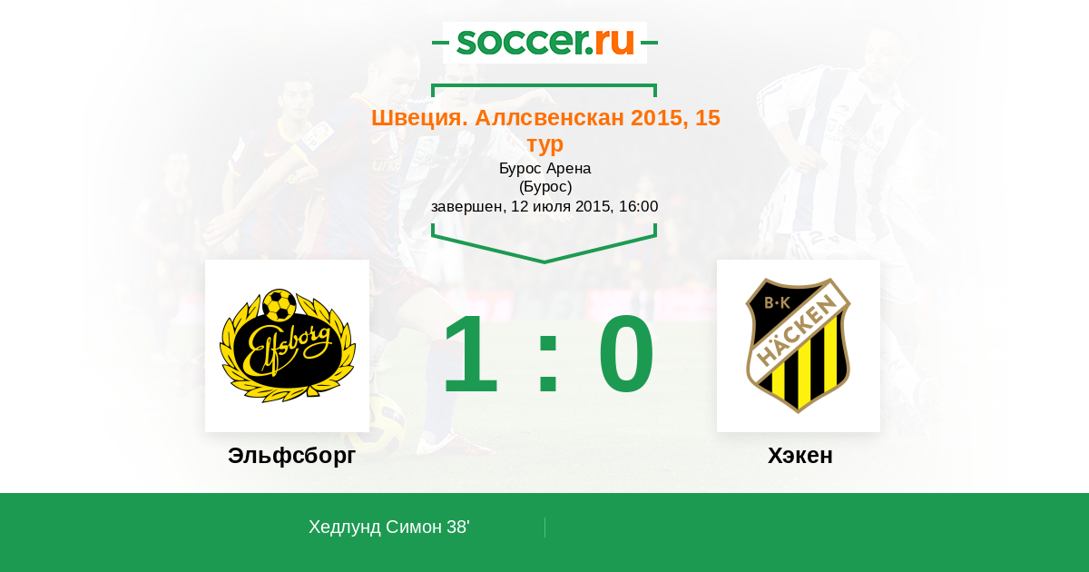 Швеция. Аллсвенскан 25.10.2015 Хэкен Логотип футбольный клуб Хэкен (Гетеборг) 5:2 Логотип футбольный клуб Эльфсборг (Бурос) Эльфсборг