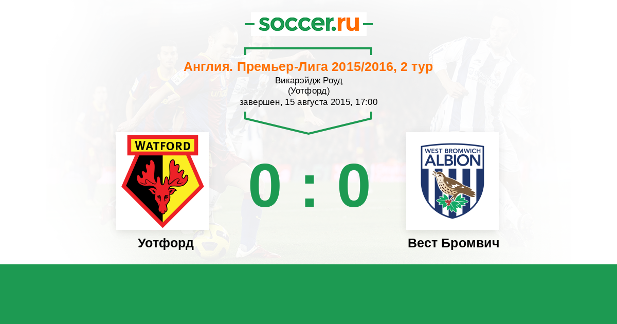 Англия. Премьер-Лига 16.04.2016 Вест Бромвич Логотип футбольный клуб Вест Бромвич 0:1 Логотип футбольный клуб Уотфорд Уотфорд