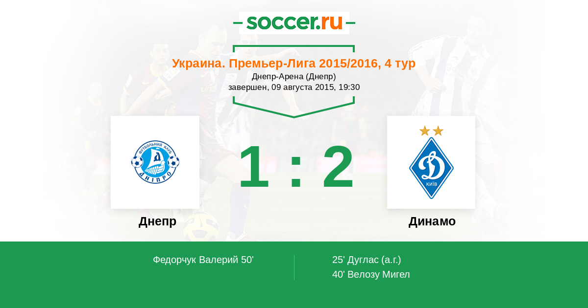 Украина. Премьер-Лига 06.08.2016 Динамо Логотип футбольный клуб Динамо (Киев) 1:0 Логотип футбольный клуб Днепр (Днепропетровск) Днепр