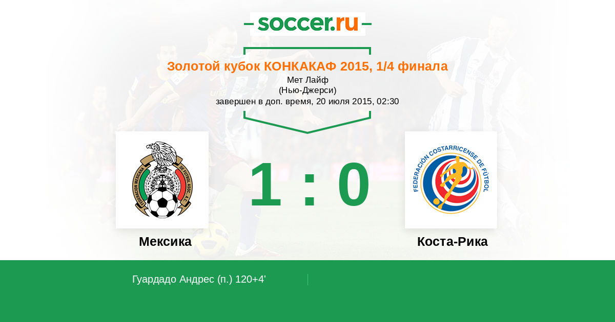 Товарищеские матчи. Сборные 28.06.2015 Мексика Логотип Мексика 2:2 Логотип Коста-Рика Коста-Рика