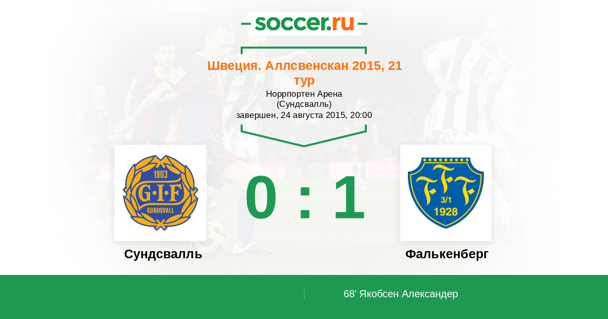 Швеция. Аллсвенскан 30.05.2015 Фалькенберг Логотип футбольный клуб Фалькенберг 1:1 Логотип футбольный клуб Сундсвалль Сундсвалль