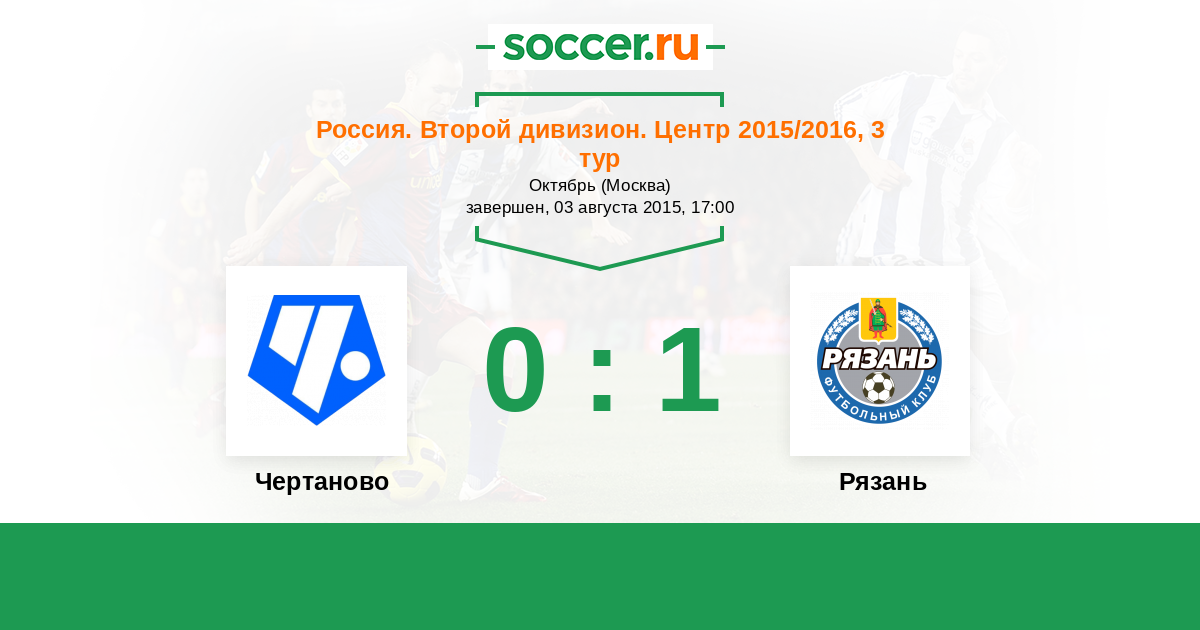 Россия. Вторая лига. Группа 3 25.10.2015 Рязань Логотип футбольный клуб Рязань 0:0 Логотип футбольный клуб Чертаново (Москва) Чертаново