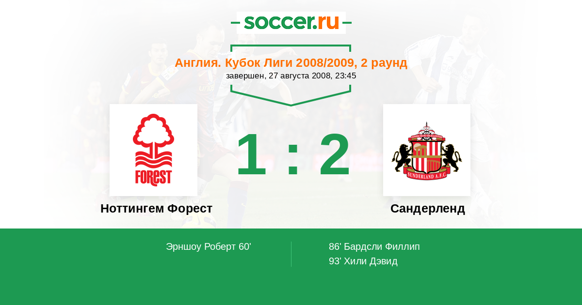 Англия. Чемпионшип 13.09.2004 Сандерленд Логотип футбольный клуб Сандерленд 2:0 Логотип футбольный клуб Ноттингем Форест Ноттингем Форест