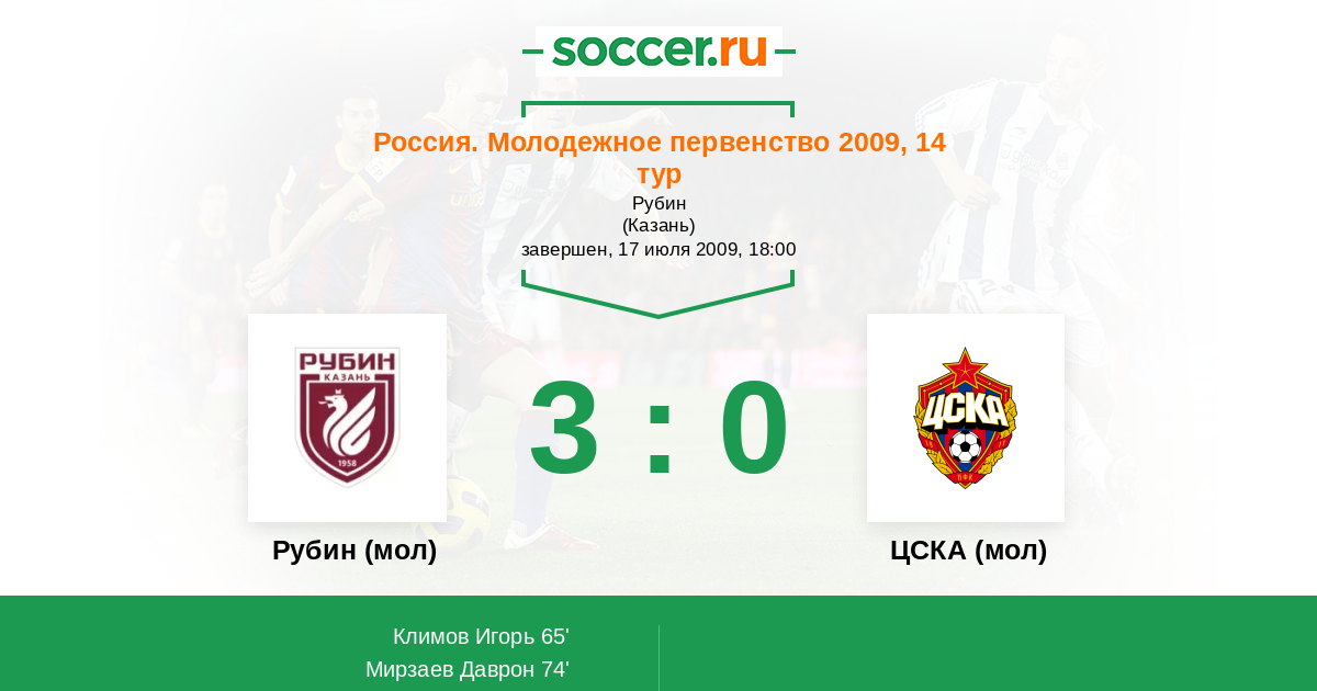 Россия. Премьер-Лига U21 07.11.2009 ЦСКА (мол) Логотип футбольный клуб ЦСКА (мол) (Москва) 1:5 Логотип футбольный клуб Рубин (мол) (Казань) Рубин (мол)