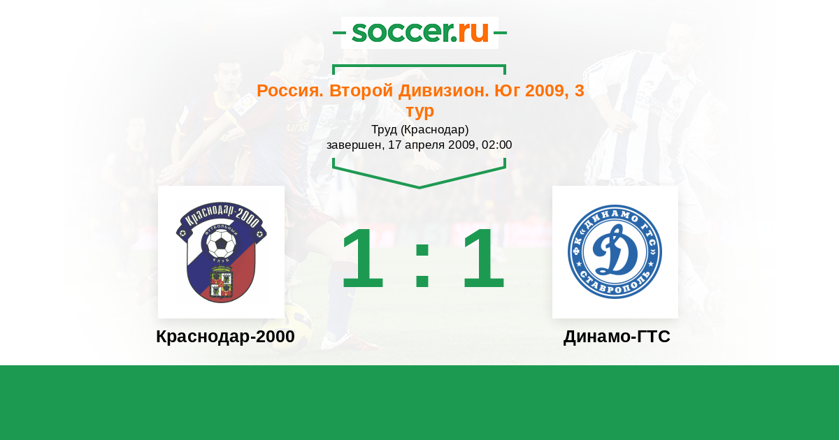 Россия. Вторая лига. Группа 1 06.08.2009 Кавказтрансгаз-2005 Логотип футбольный клуб Кавказтрансгаз-2005 (Ставрополь) 1:2 Логотип футбольный клуб Краснодар-2000 Краснодар-2000