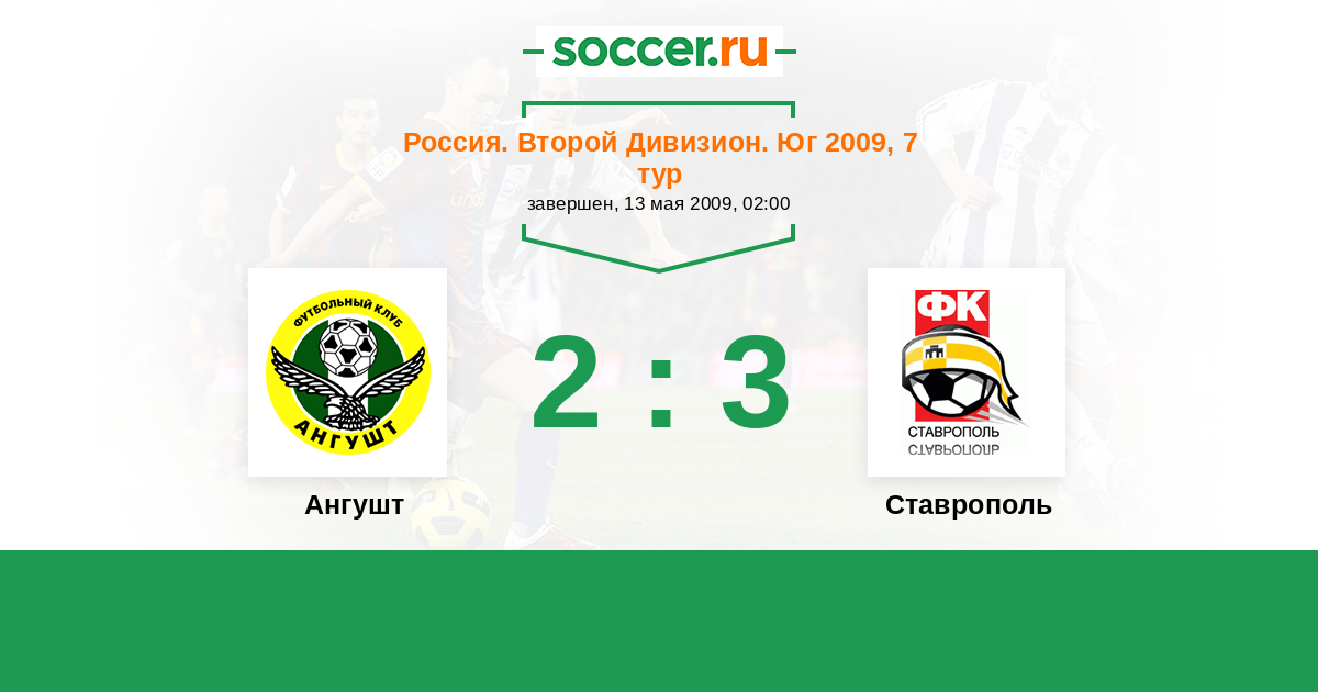 Россия. Вторая лига. Группа 1 31.08.2009 Ставрополь Логотип футбольный клуб Ставрополь 1:0 Логотип футбольный клуб Ангушт (Назрань) Ангушт