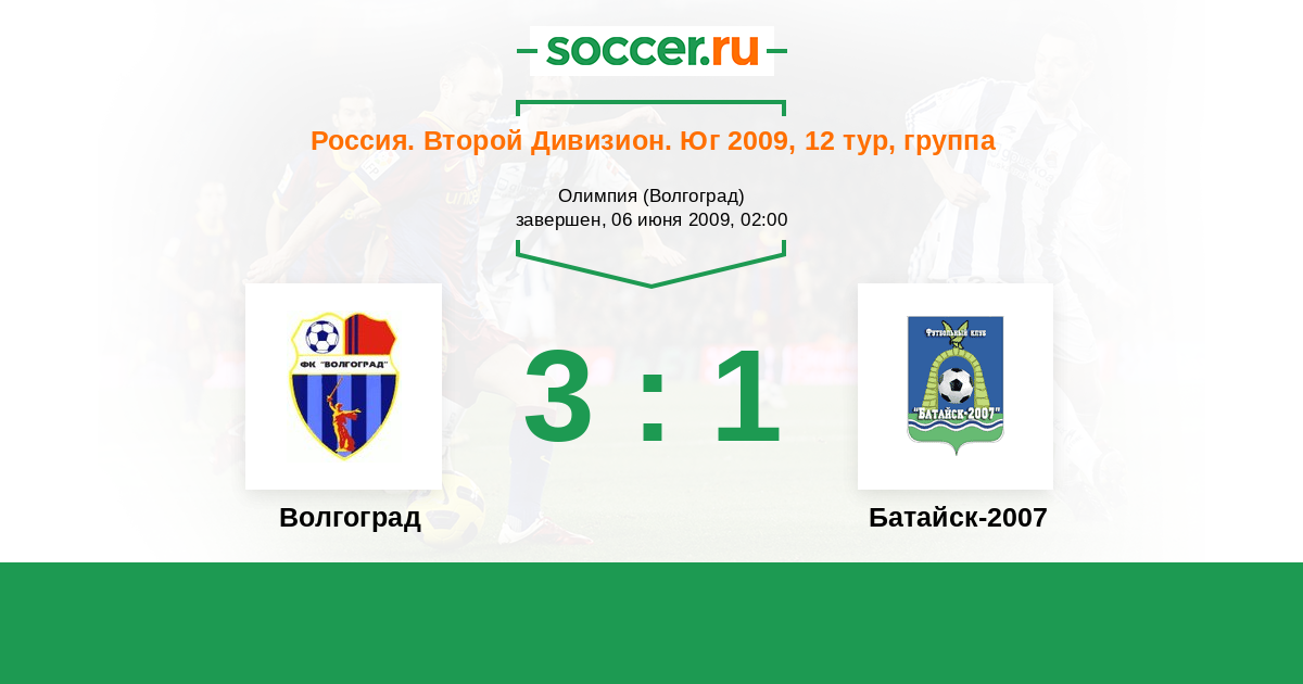Россия. Вторая лига. Группа 1 23.09.2009 Батайск-2007 Логотип футбольный клуб Батайск-2007 1:1 Логотип футбольный клуб Волгоград Волгоград