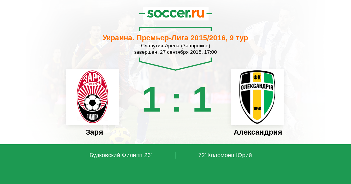 Украина. Премьер-Лига 29.10.2017 Заря Логотип футбольный клуб Заря (Луганск) 2:2 Логотип футбольный клуб Александрия Александрия