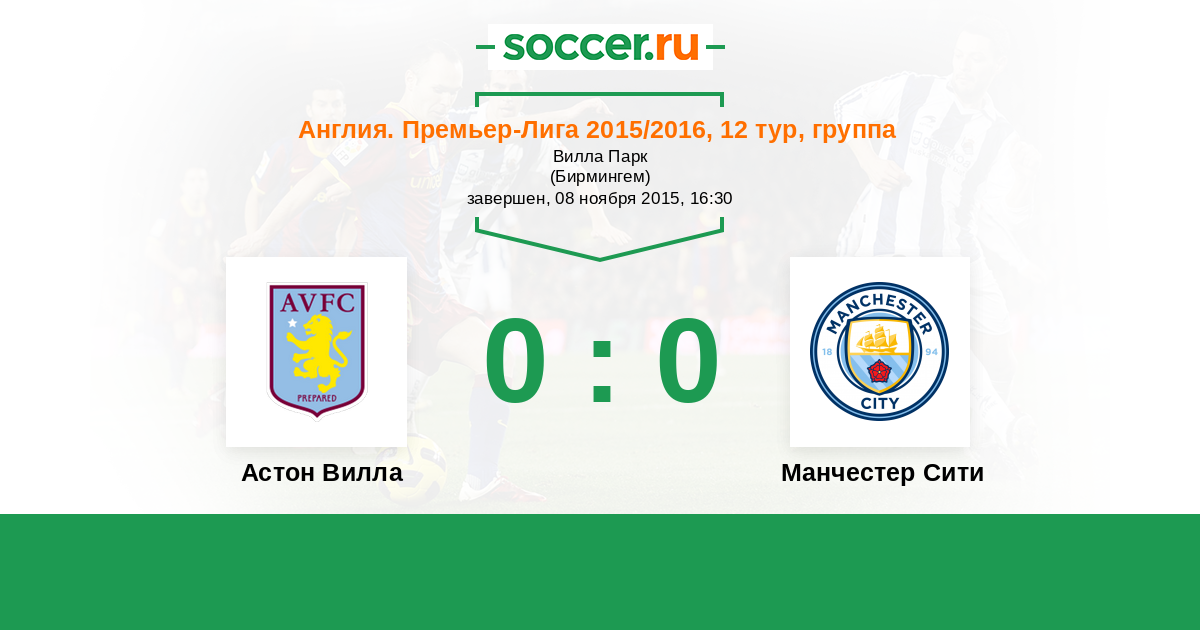 Англия. Премьер-Лига 05.03.2016 Манчестер Сити Логотип футбольный клуб Манчестер Сити 4:0 Логотип футбольный клуб Астон Вилла (Бирмингем) Астон Вилла