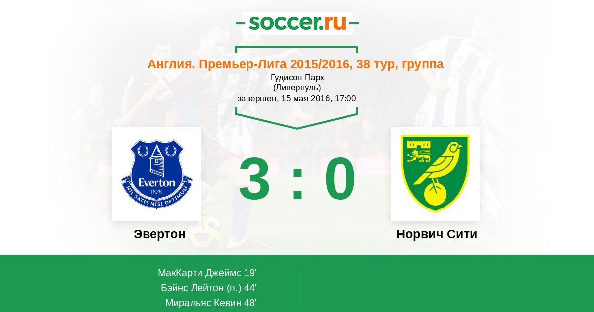 Англия. Премьер-Лига 12.12.2015 Норвич Сити Логотип футбольный клуб Норвич Сити 1:1 Логотип футбольный клуб Эвертон (Ливерпуль) Эвертон