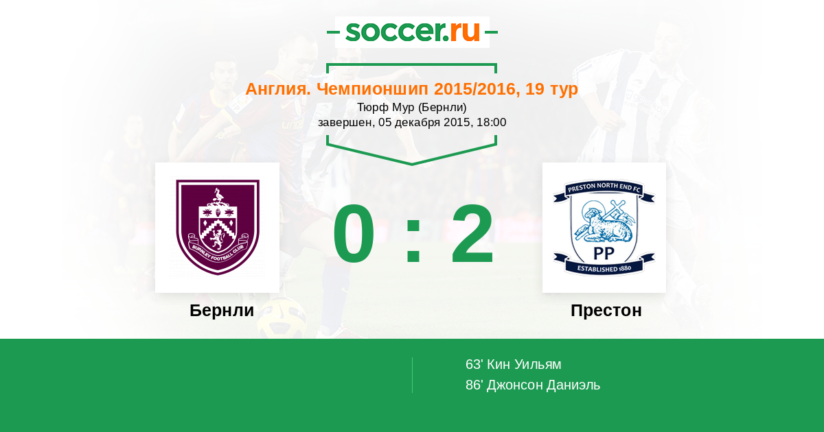 Англия. Чемпионшип 22.04.2016 Престон Логотип футбольный клуб Престон 0:1 Логотип футбольный клуб Бернли Бернли