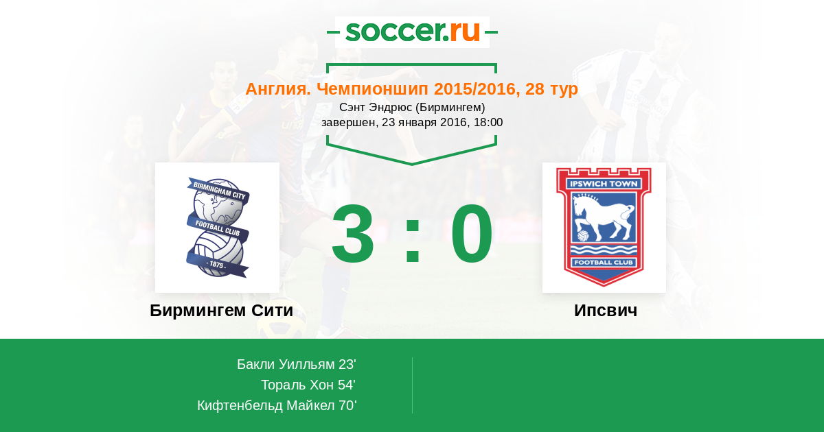 Англия. Чемпионшип 24.02.2015 Ипсвич Логотип футбольный клуб Ипсвич 4:2 Логотип футбольный клуб Бирмингем Сити Бирмингем Сити