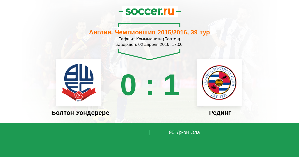 Англия. Чемпионшип 03.03.2015 Болтон Уондерерс Логотип футбольный клуб Болтон Уондерерс 1:1 Логотип футбольный клуб Рединг Рединг