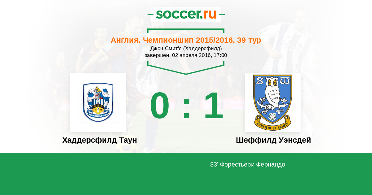 Англия. Чемпионшип 04.04.2015 Шеффилд Уэнсдей Логотип футбольный клуб Шеффилд Уэнсдей 1:1 Логотип футбольный клуб Хаддерсфилд Таун Хаддерсфилд Таун