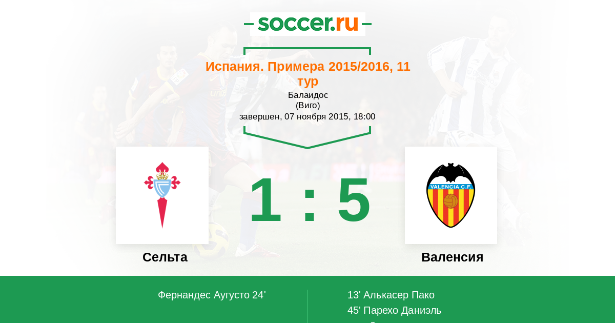 Испания. Примера 06.11.2016 Сельта Логотип футбольный клуб Сельта (Виго) 2:1 Логотип футбольный клуб Валенсия Валенсия