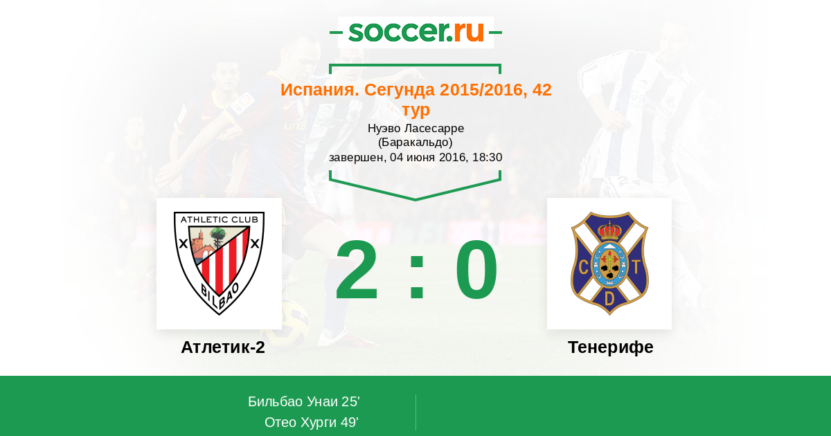 Тенерифе 2:0 2:0 0:0