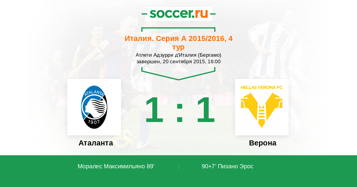 Италия. Серия А 31.08.2014 Аталанта Логотип футбольный клуб Аталанта (Бергамо) 0:0 Логотип футбольный клуб Верона Верона