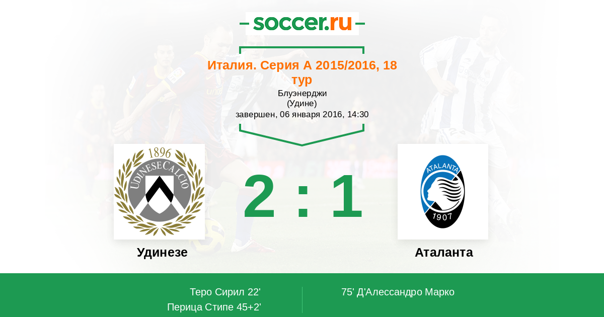 Италия. Кубок 02.12.2015 Удинезе Логотип футбольный клуб Удинезе 3:1 Логотип футбольный клуб Аталанта (Бергамо) Аталанта