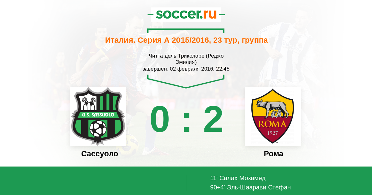 Италия. Серия А 20.09.2015 Рома Логотип футбольный клуб Рома (Рим) 2:2 Логотип футбольный клуб Сассуоло Сассуоло