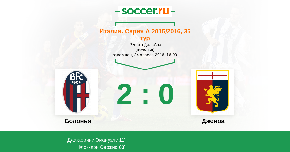 Италия. Серия А 12.12.2015 Дженоа Логотип футбольный клуб Дженоа (Генуя) 0:1 Логотип футбольный клуб Болонья Болонья