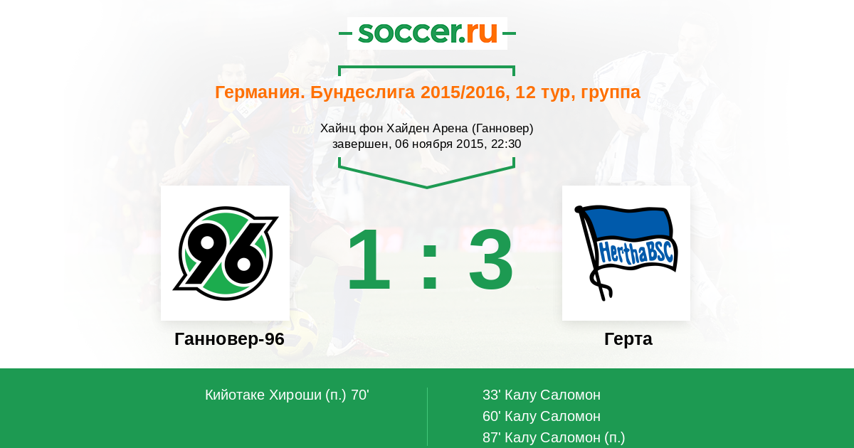 Германия. Бундеслига 08.04.2016 Герта Логотип футбольный клуб Герта (Берлин) 2:2 Логотип футбольный клуб Ганновер-96 Ганновер-96