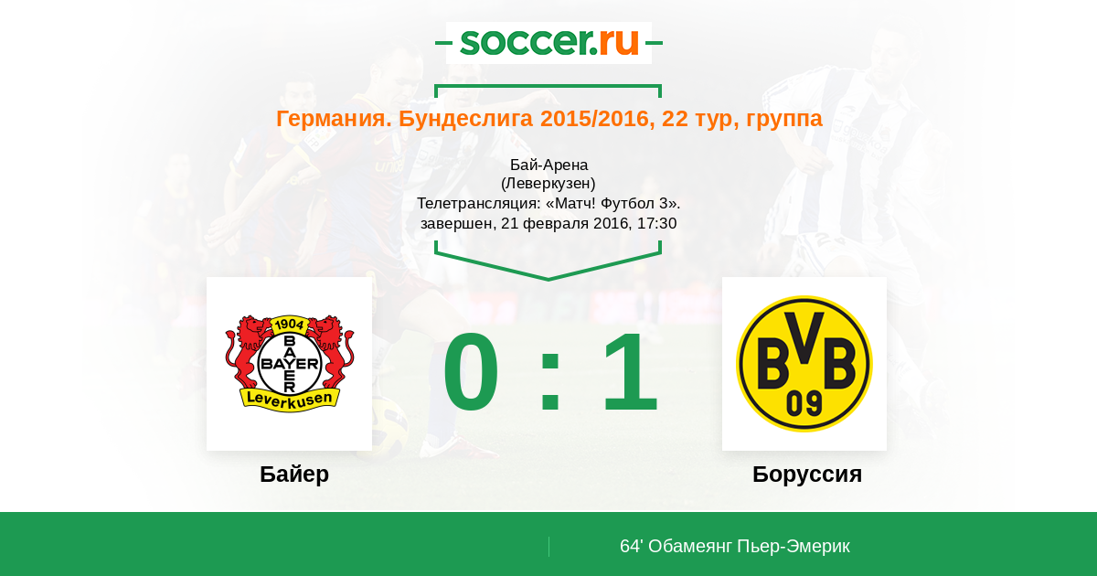 Германия. Бундеслига 20.09.2015 Боруссия Логотип футбольный клуб Боруссия (Дортмунд) 3:0 Логотип футбольный клуб Байер (Леверкузен) Байер