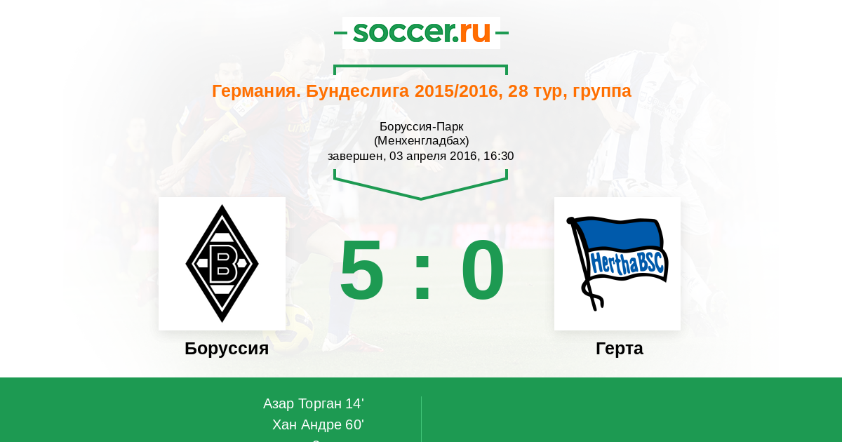 Германия. Бундеслига 31.10.2015 Герта Логотип футбольный клуб Герта (Берлин) 1:4 Логотип футбольный клуб Боруссия (Менхенгладбах) Боруссия