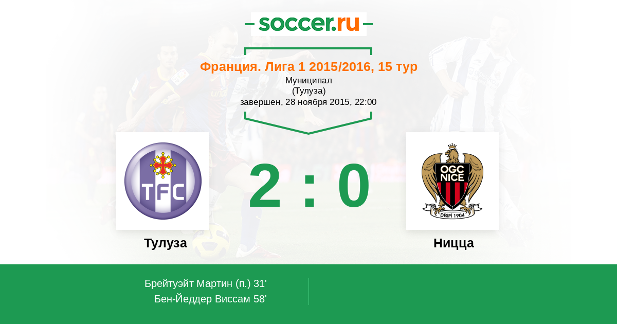 Франция. Лига 1 01.03.2014 Ницца Логотип футбольный клуб Ницца 0:2 Логотип футбольный клуб Тулуза Тулуза
