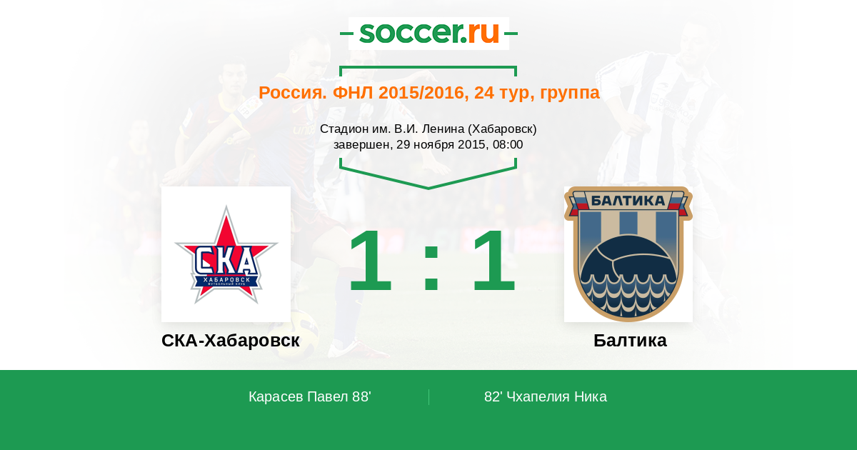 Россия. Первая лига 12.04.2017 Балтика Логотип футбольный клуб Балтика (Калининград) 0:0 Логотип футбольный клуб СКА-Хабаровск СКА-Хабаровск