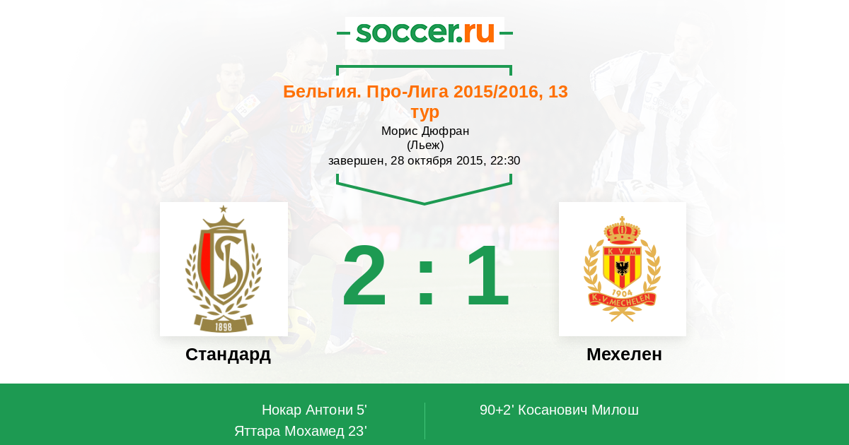 Бельгия. Про-Лига 07.03.2015 Мехелен Логотип футбольный клуб Мехелен 1:0 Логотип футбольный клуб Стандард (Льеж) Стандард