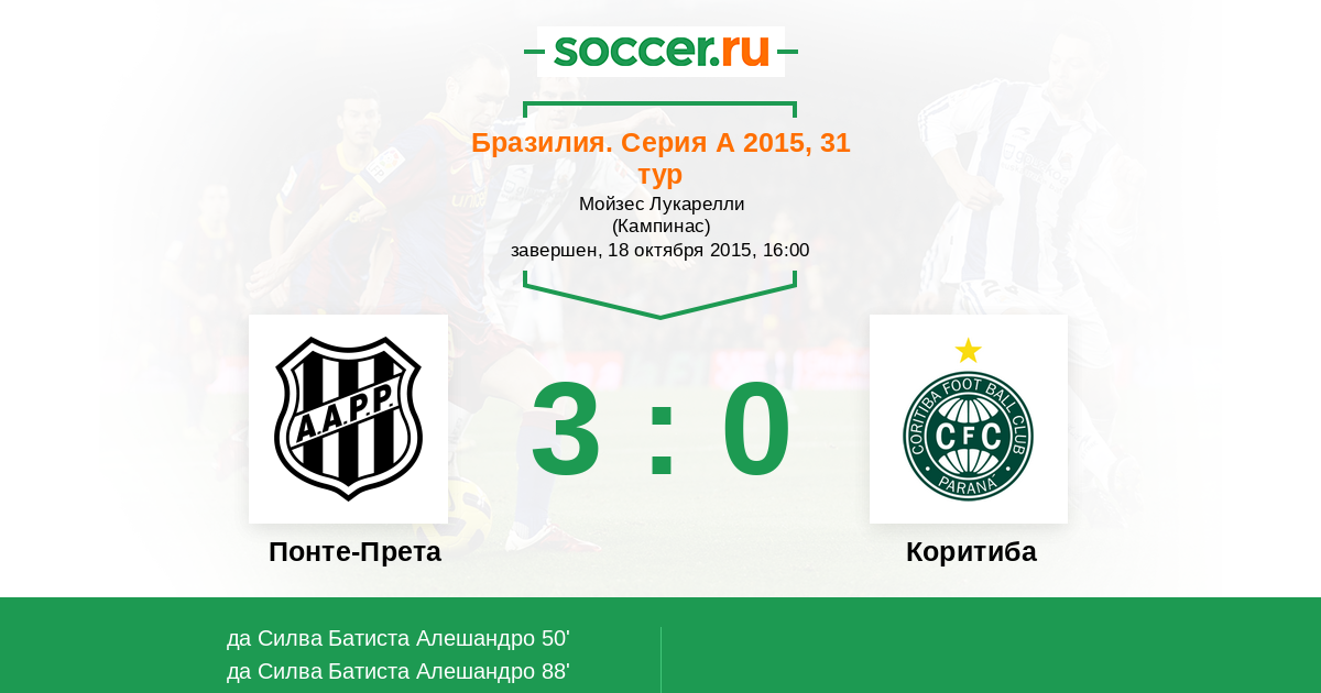 Бразилия. Серия А 17.10.2013 Понте-Прета Логотип футбольный клуб Понте-Прета (Кампинас) 1:0 Логотип футбольный клуб Коритиба Коритиба