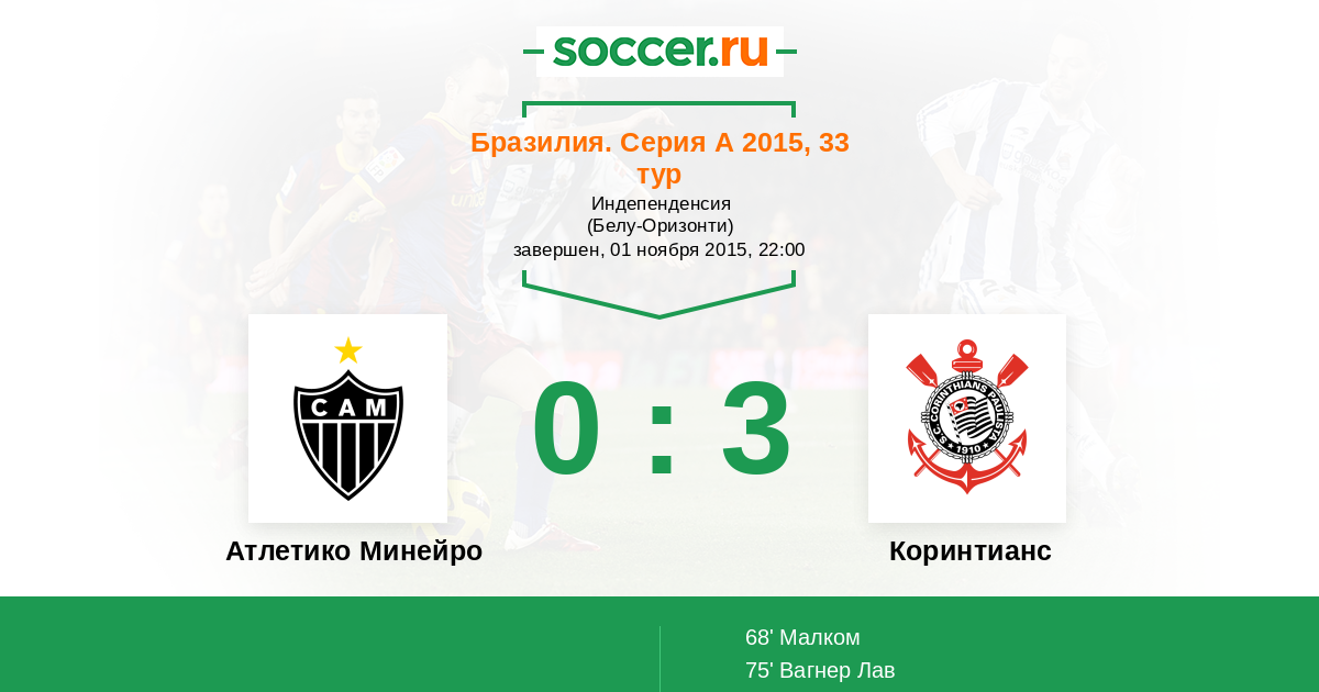 Бразилия. Серия А 19.07.2015 Коринтианс Логотип футбольный клуб Коринтианс (Сан-Паулу) 1:0 Логотип футбольный клуб Атлетико Минейро (Белу-Оризонти) Атлетико Минейро