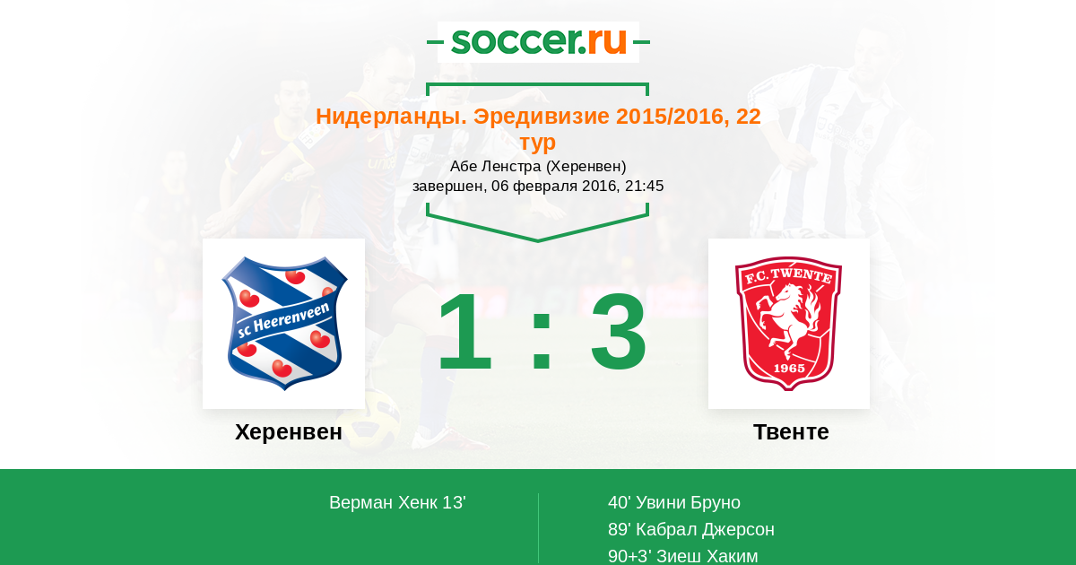 Нидерланды. Эредивизи 05.02.2014 Херенвен Логотип футбольный клуб Херенвен 0:2 Логотип футбольный клуб Твенте (Энсхеде) Твенте