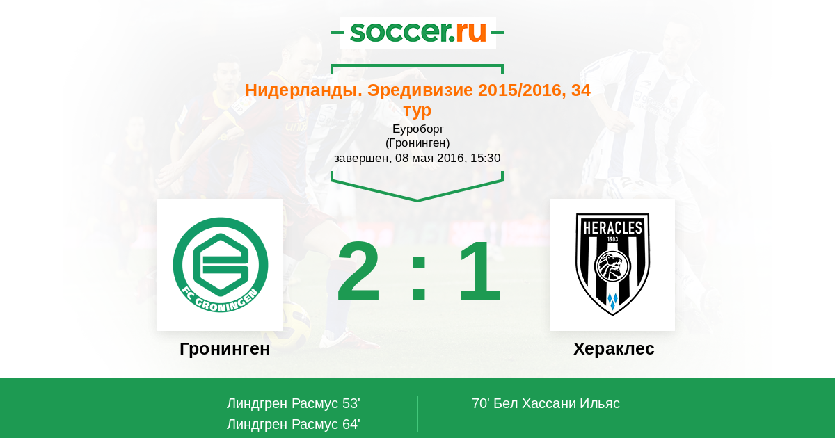 Нидерланды. Эредивизи 15.05.2016 Хераклес Логотип футбольный клуб Хераклес (Алмело) 5:1 Логотип футбольный клуб Гронинген Гронинген