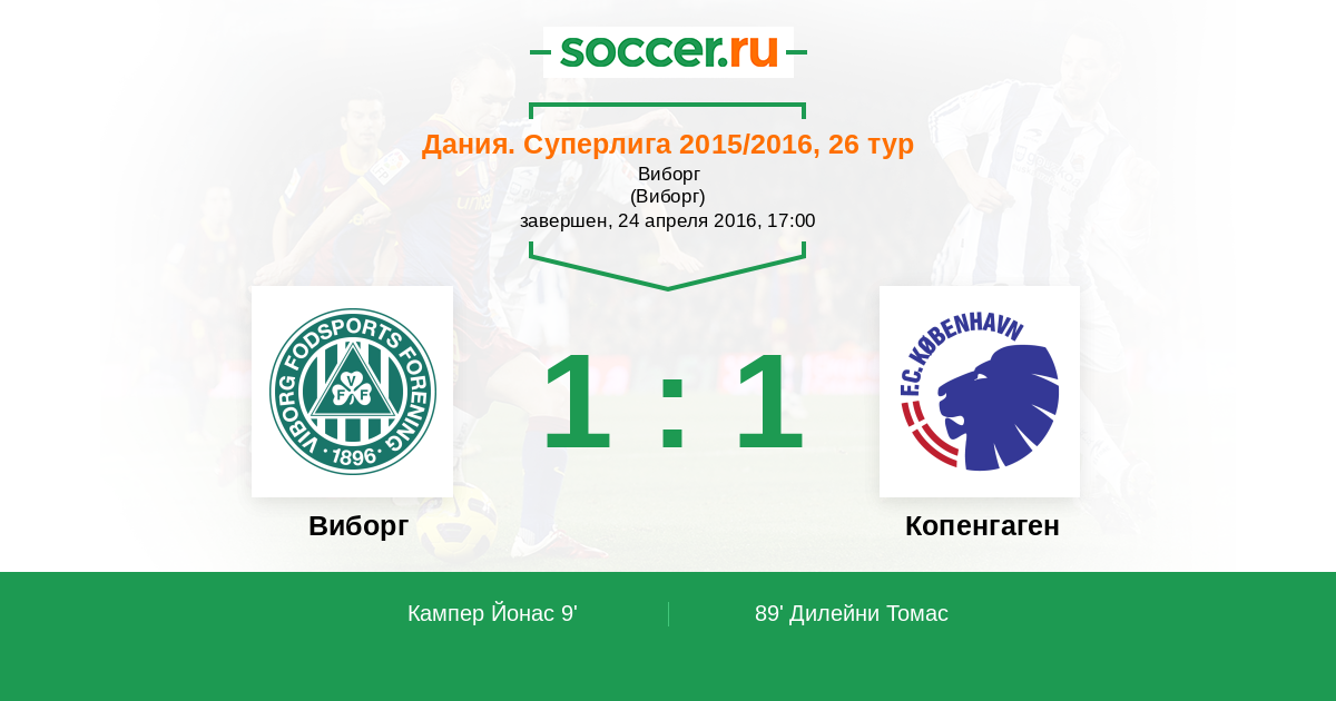 Дания. Суперлига 02.10.2016 Виборг Логотип футбольный клуб Виборг 0:0 Логотип футбольный клуб Копенгаген Копенгаген