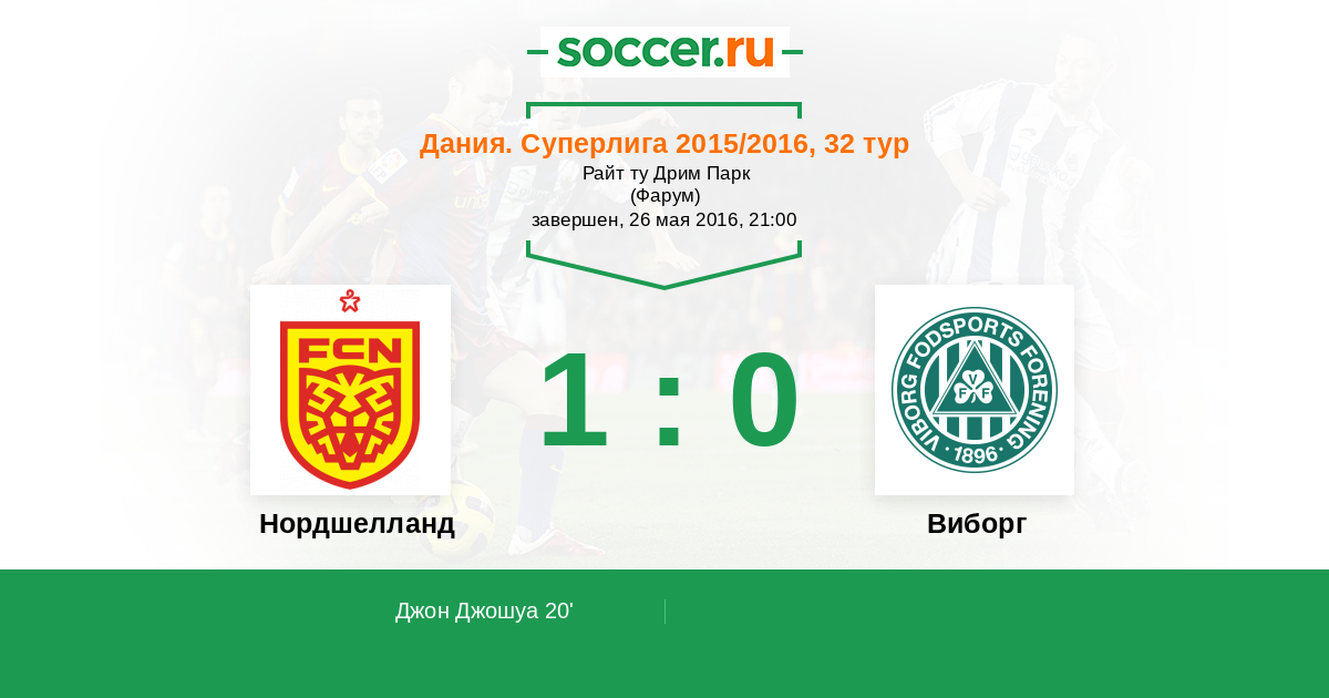 Дания. Суперлига 15.07.2016 Виборг Логотип футбольный клуб Виборг 0:4 Логотип футбольный клуб Нордшелланд (Фарум) Нордшелланд
