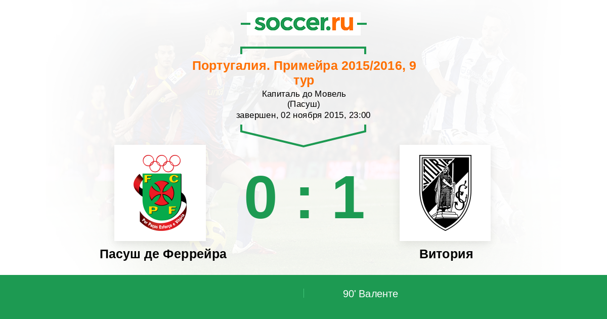 Португалия. Примейра 13.03.2016 Витория Логотип футбольный клуб Витория (Гимараеш) 0:1 Логотип футбольный клуб Пасуш де Феррейра Пасуш де Феррейра