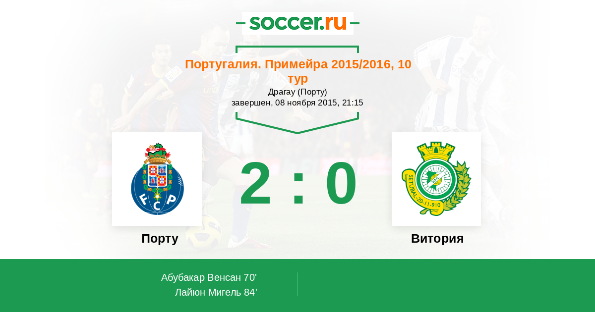 Португалия. Примейра 19.03.2016 Витория Логотип футбольный клуб Витория (Сетубал) 0:1 Логотип футбольный клуб Порту Порту