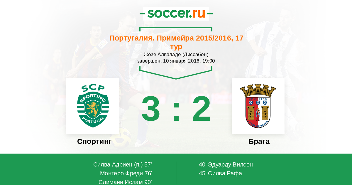 Португалия. Примейра 09.01.2011 Спортинг Логотип футбольный клуб Спортинг (Лиссабон) 2:1 Логотип футбольный клуб Брага Брага