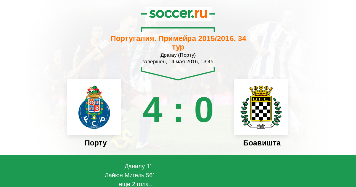 Португалия. Примейра 10.01.2016 Боавишта Логотип футбольный клуб Боавишта (Порту) 0:5 Логотип футбольный клуб Порту Порту