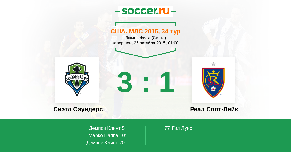 США. МЛС 13.09.2014 Сиэтл Саундерс Логотип футбольный клуб Сиэтл Саундерс 3:2 Логотип футбольный клуб Реал Солт-Лейк (Солт-Лейк-Сити) Реал Солт-Лейк