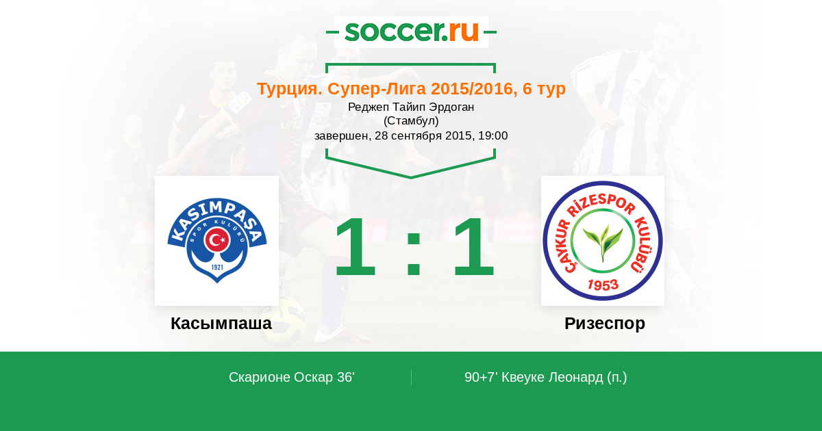 Турция. Суперлига 20.09.2020 Касымпаша Логотип футбольный клуб Касымпаша (Стамбул) 2:0 Логотип футбольный клуб Ризеспор Ризеспор