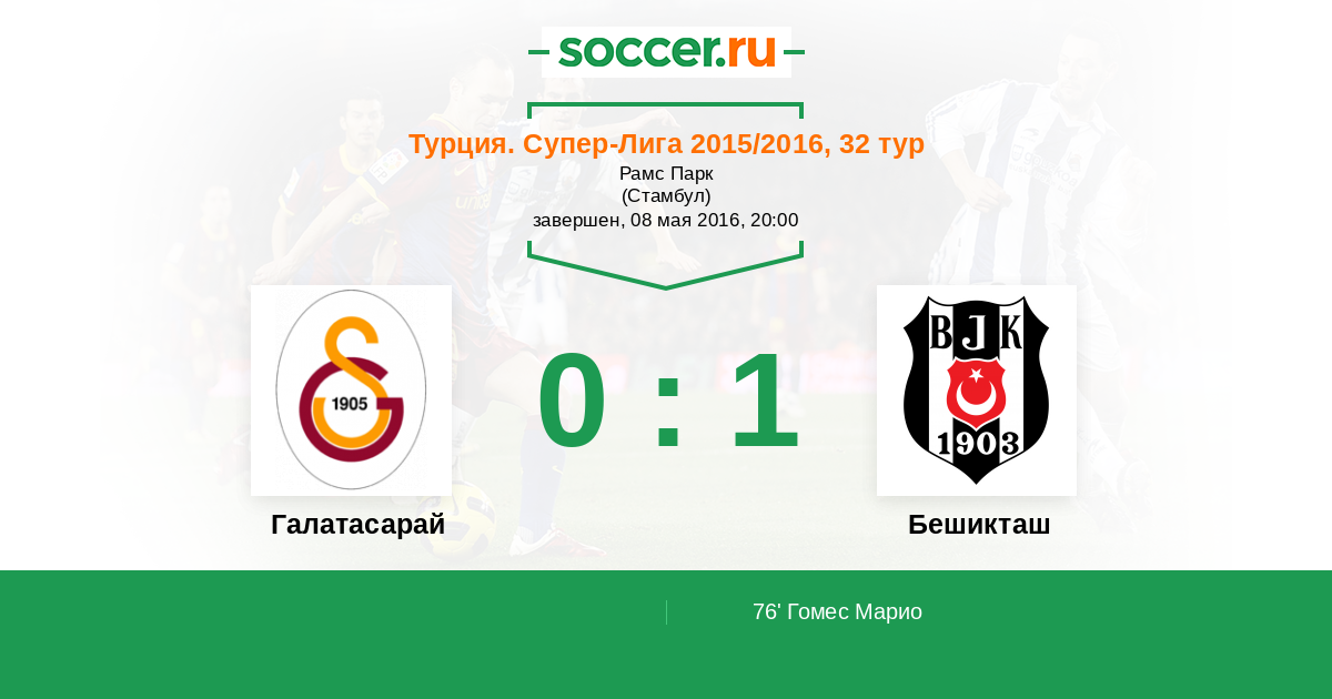 Турция. Суперлига 24.05.2015 Галатасарай Логотип футбольный клуб Галатасарай (Стамбул) 2:0 Логотип футбольный клуб Бешикташ (Стамбул) Бешикташ