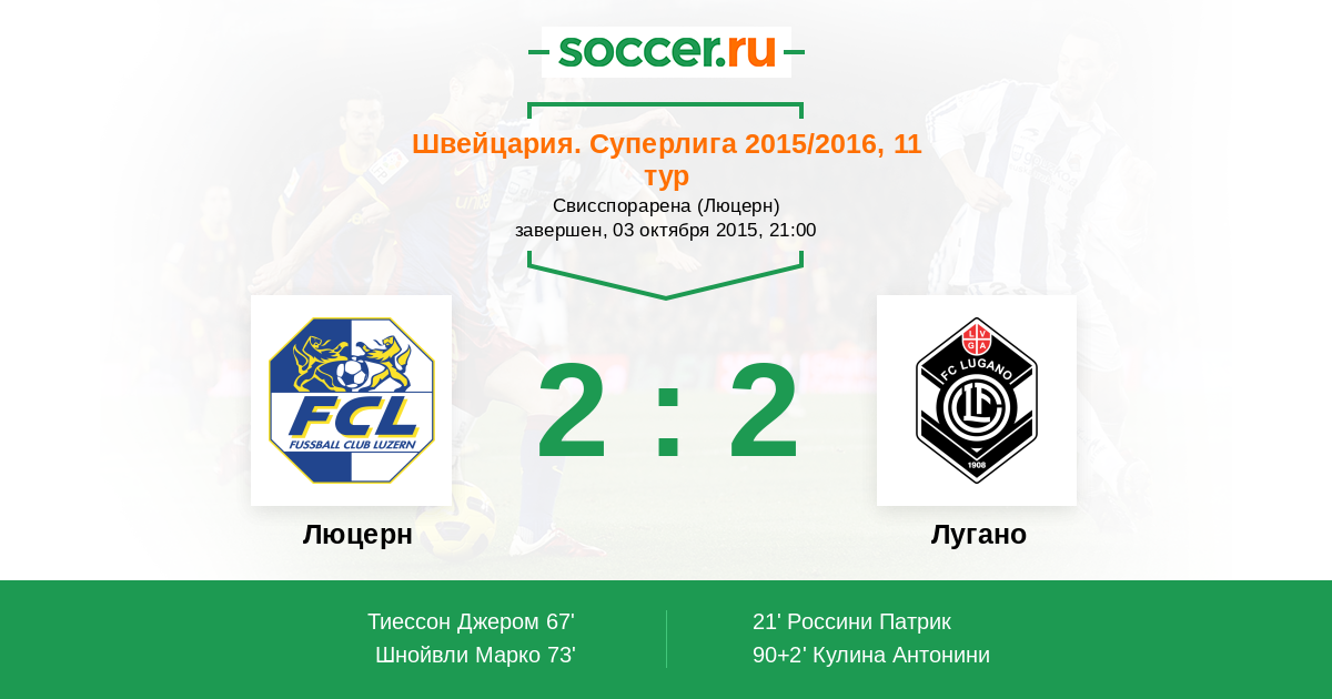 Швейцария. Суперлига 02.04.2017 Люцерн Логотип футбольный клуб Люцерн 0:2 Логотип футбольный клуб Лугано Лугано
