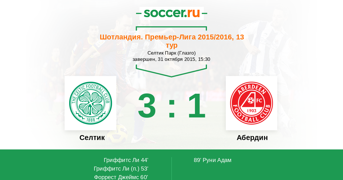 Шотландия. Премьер-Лига 01.03.2015 Селтик Логотип футбольный клуб Селтик (Глазго) 4:0 Логотип футбольный клуб Абердин Абердин