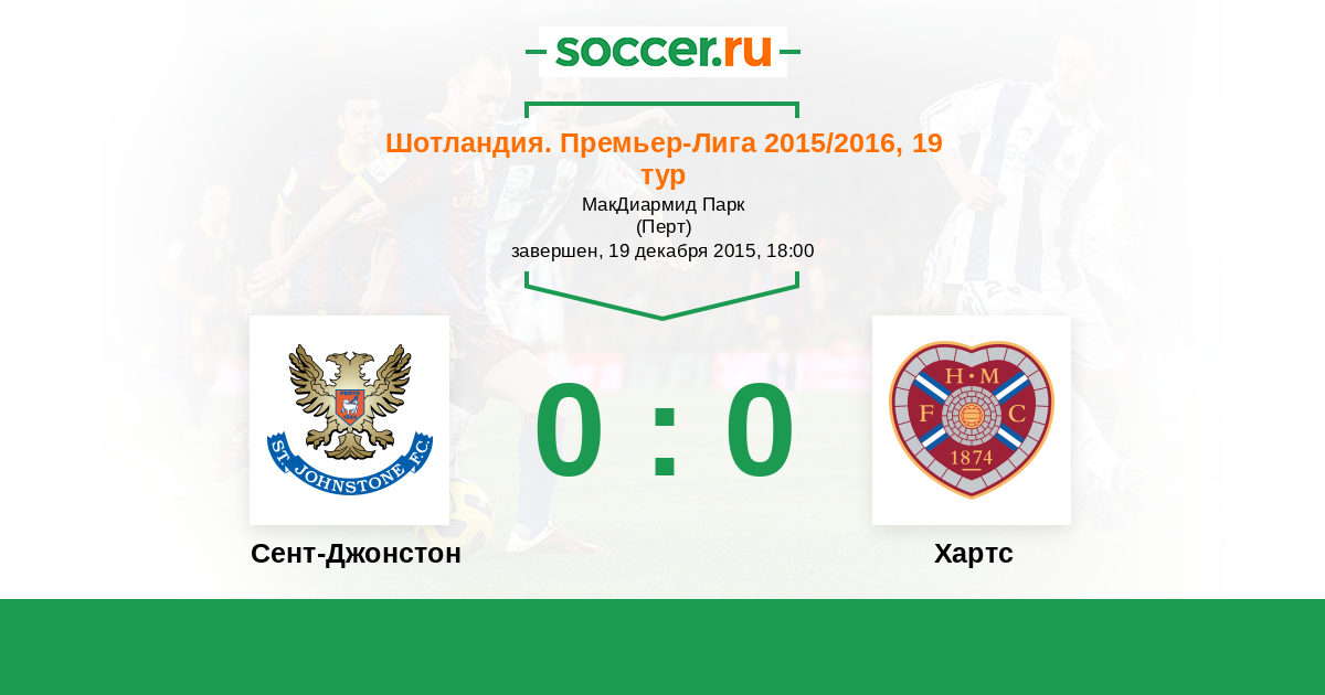Шотландия. Премьер-Лига 19.03.2016 Хартс Логотип футбольный клуб Хартс (Эдинбург) 0:3 Логотип футбольный клуб Сент-Джонстон (Перт) Сент-Джонстон