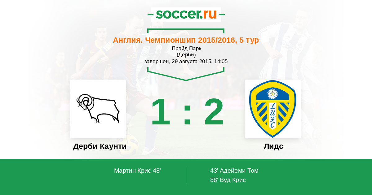 Англия. Чемпионшип 29.12.2015 Лидс Логотип футбольный клуб Лидс 2:2 Логотип футбольный клуб Дерби Каунти Дерби Каунти