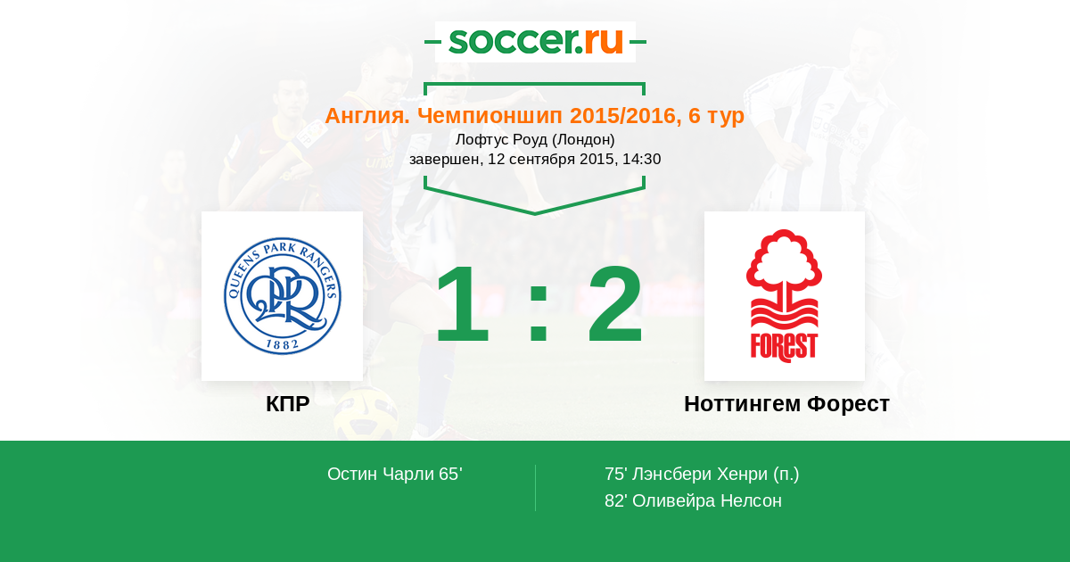 Англия. Чемпионшип 12.04.2014 КПР Логотип футбольный клуб КПР (Лондон) 5:2 Логотип футбольный клуб Ноттингем Форест Ноттингем Форест